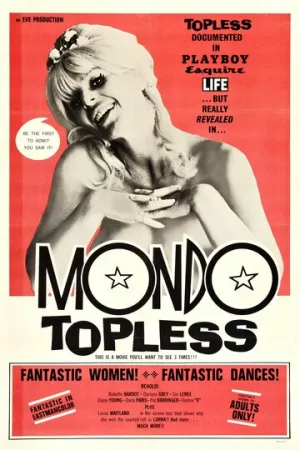 Мондо — составная часть названия ряда документальных фильмов, касающихся сенсационных тем и явлений. Часто напоминают собой псевдо-документальные фильмы. Фильм Русса Майера «Mondo Topless» был одним из немногих «документальных» фильмов, до видео-эры запрещённых к показу в дневное время (полуночные фильмы), поскольку исследовал стрип-клубы Сан-Франциско 1960-х гг., в то время, как на остальной территории США стрип-клубы были в новинку, их распространение ограничивалось в основном портовыми городами. На протяжении всего фильма восхитительные девушки топлесс танцуют под задорную музыку 60-х…